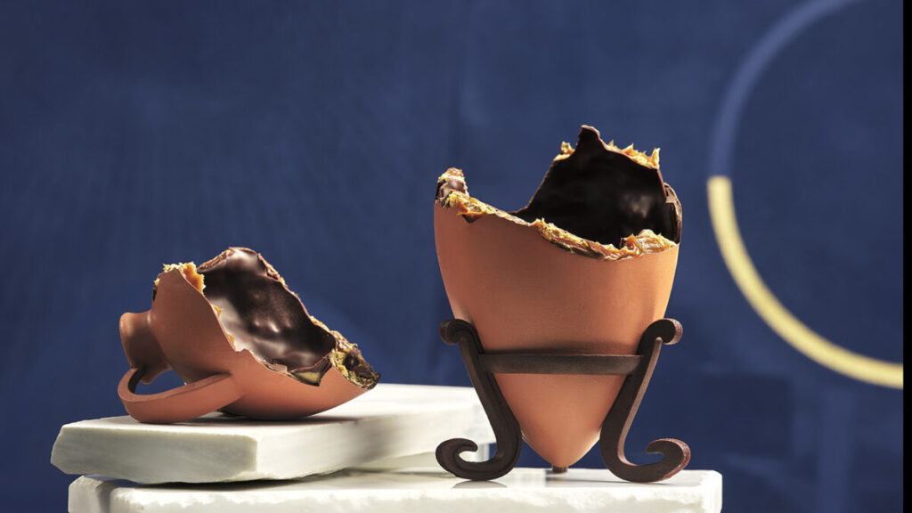 Η κληρονομιά και η παράδοση εμπνέουν και το φετινό πασχαλινό αυγό του ξενοδοχείου. Δημιουργία του Executive Pastry Chef Μιχάλη Χατζηκαλημέρη, το πασχαλινό αυγό εμπνέεται από την αρχαία Ελλάδα και έχει σχήμα αρχαίου ελληνικού αμφορέα, του κομψού αγγείου μεταφοράς κρασιού, λαδιού και σιτηρών.